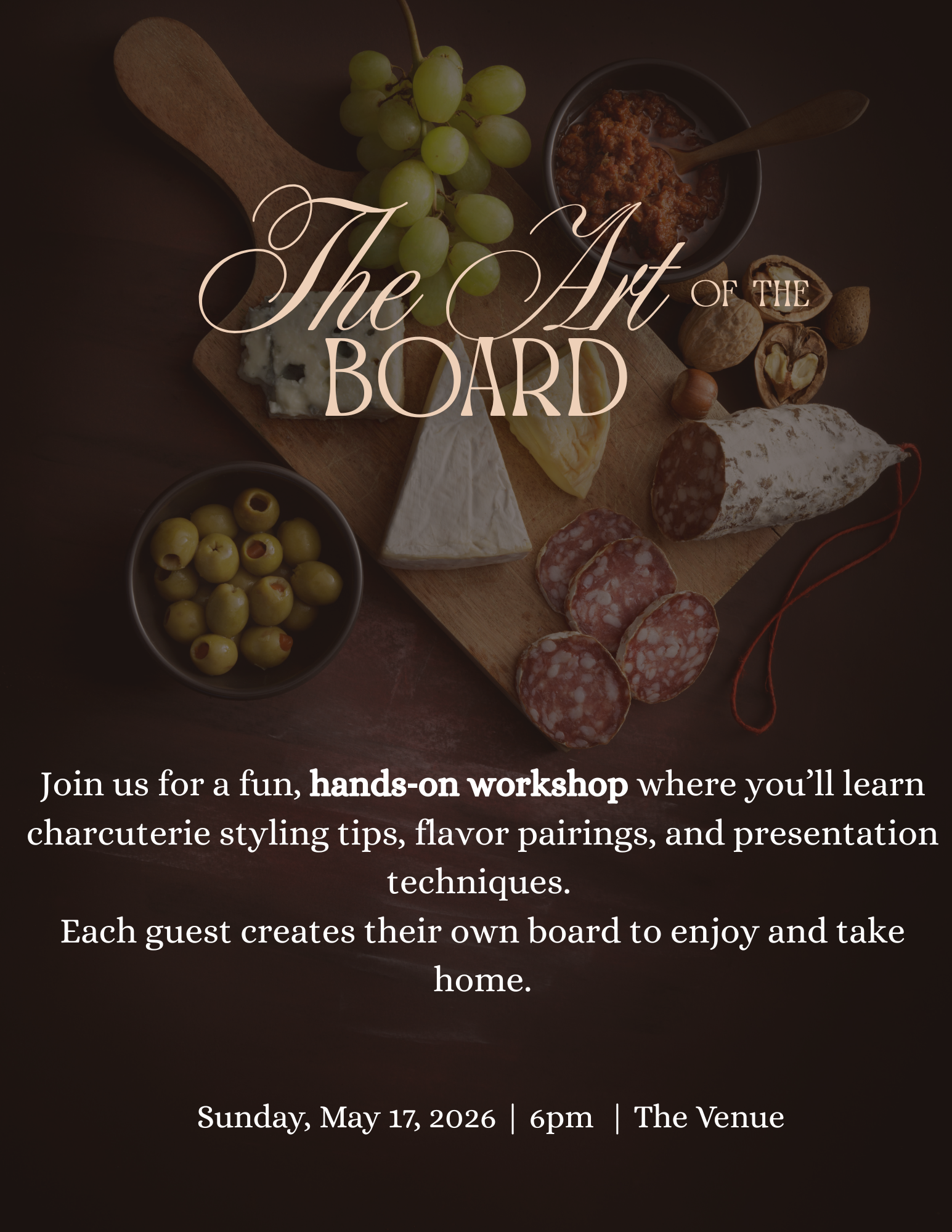 Get ready for a delicious, hands‑on experience! Join us for The Art of the Board, an interactive charcuterie board making…